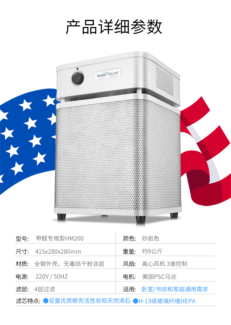 【美國(guó)原裝進(jìn)口】推薦房間/會(huì)議室/辦公室快速除甲醛 適用小面積空間-奧司汀空氣凈化器HM200