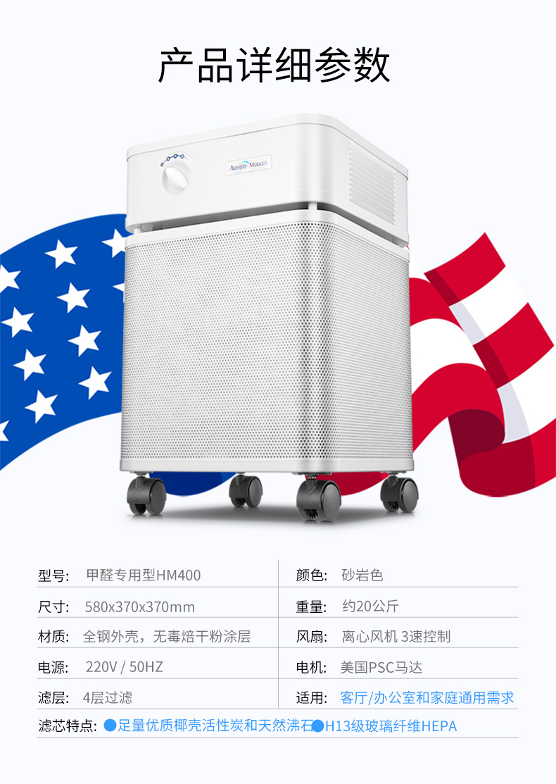 【美國(guó)原裝進(jìn)口】推薦家居/房間/客廳/凈化除醛除味 適用中大面積空間 - 奧司汀空氣凈化器HM400
