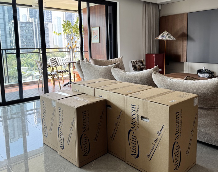 深圳香山美墅新房子裝修,因為臨近過年,想要在年前住進去,所以找到我們美國進口奧司汀空氣凈化器除甲醛異味,租賃我們8臺空氣凈化器,售后師傅免費配送上門安裝,根據房間配置空氣凈化器凈化空氣,客戶使用了幾天,反饋效果非常好。
