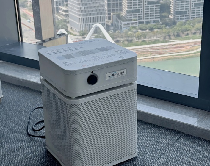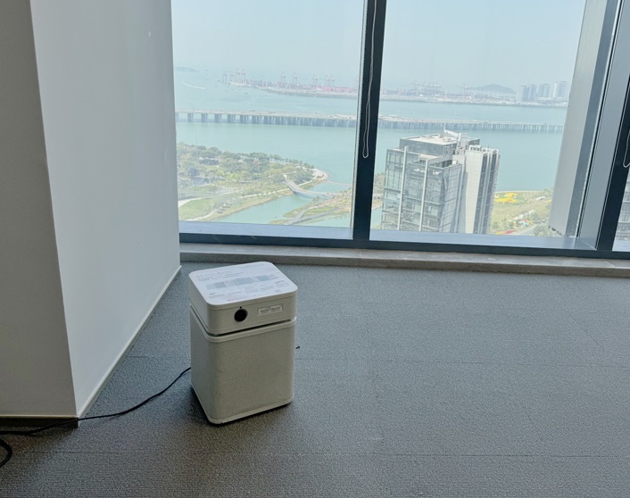 深圳前海鴻榮源中心寫字樓在完成裝修后,為了確保室內空氣質量,凈化裝修可能殘留的甲醛、苯等有害物質,選擇了租賃奧司汀空氣凈化器,給員工創造一個更健康更舒適的工作環境,保障室內環境空氣健康。